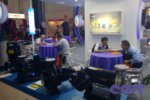 本次展会,东方泵业展台吸引了众多国内外业界人士及专业采购代表团的驻足参观并进行相关技术交流。我公司DFSS双吸泵、DFWQ排污泵,ZQ潜水轴流泵,BW(I)管网叠压供水设备为代表的环保排污产品以及化工泵系列依旧是展会上受采购代表青睐的热门产品,尤其 DFSS双吸泵多次受到专业人士、展会记者以及国内外采购代表的高度关注。